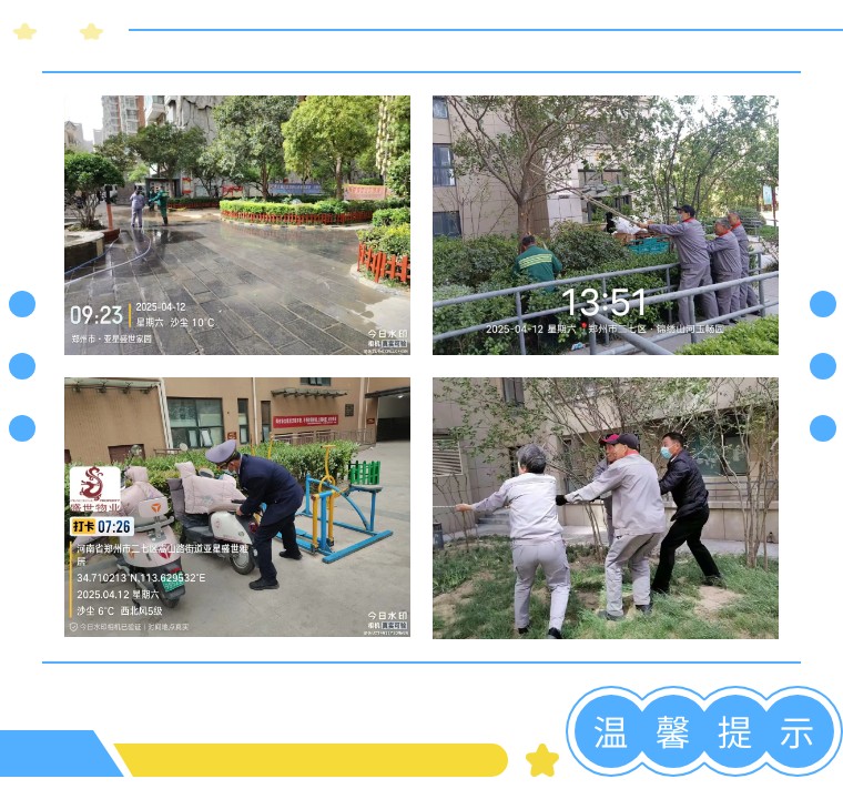 当您清晨推开窗,看到干净的路面、整齐的绿植、安全的设施,那背后是物业人连续作战的身影 —— 他们的衣服被汗水浸透又风干,手掌磨出了水泡,嗓子喊得沙哑,但始终挂在脸上的,是“守护家园” 的坚定与自豪。