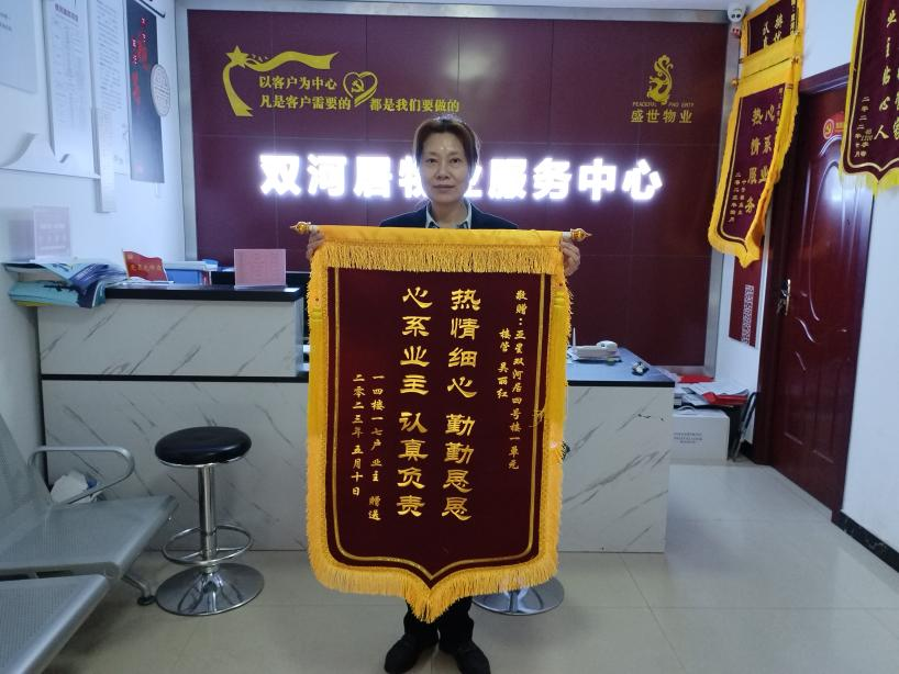5月12日,双河居小区的帖先生来到双河居物业服务中心,为他的楼管吴丽红送上一面锦旗。说起他们之间的缘分,要追溯到很久之前的一个善心之举。