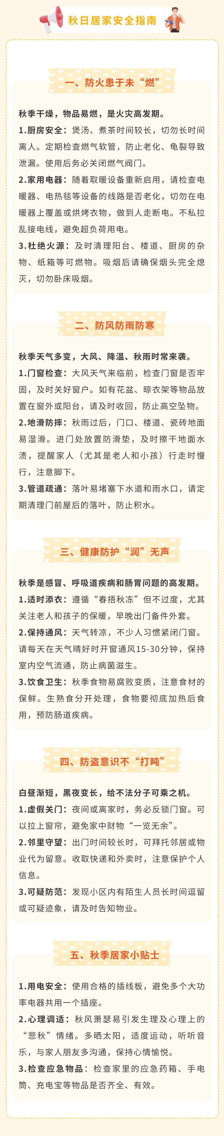 秋日居家安全提醒:天凉好个秋,安全记心头