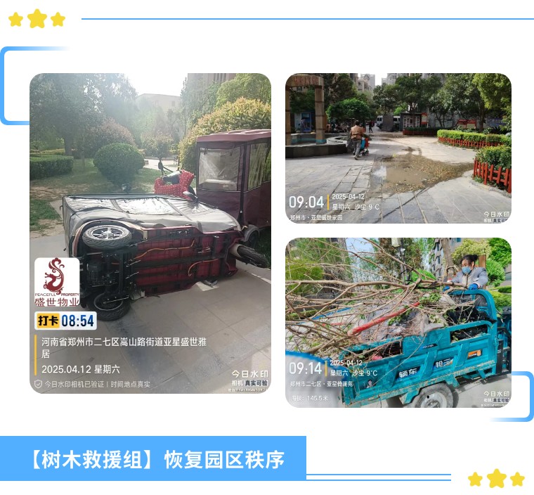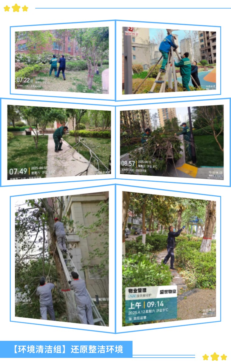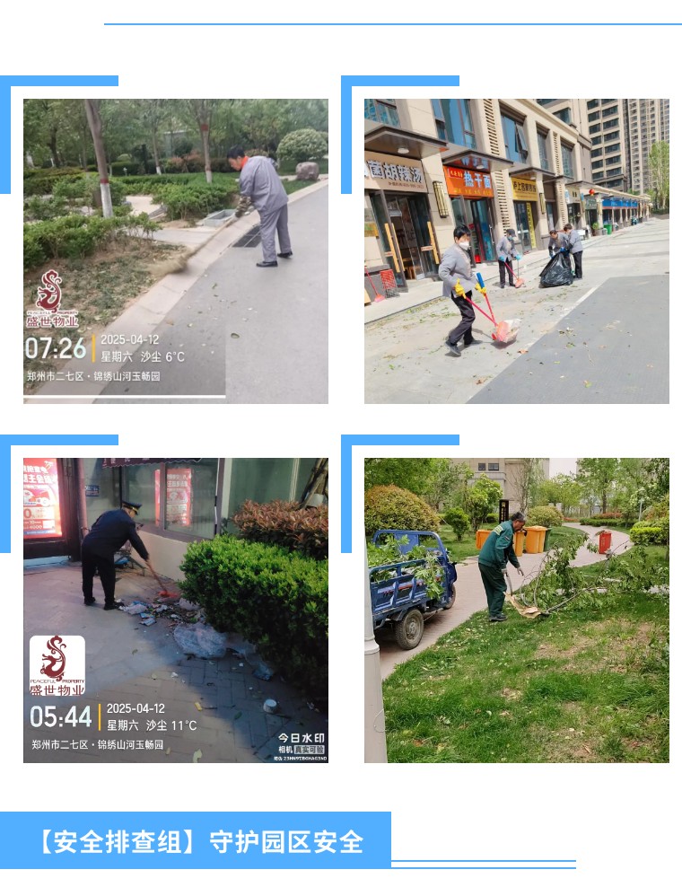 当清晨第一缕阳光穿透云层,园区内已是一片“狼藉”,碎石、落叶、垃圾……物业人顾不上昨夜值班的疲惫,立刻投入战斗。