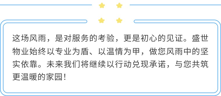 当您清晨推开窗,看到干净的路面、整齐的绿植、安全的设施,那背后是物业人连续作战的身影 —— 他们的衣服被汗水浸透又风干,手掌磨出了水泡,嗓子喊得沙哑,但始终挂在脸上的,是“守护家园” 的坚定与自豪。