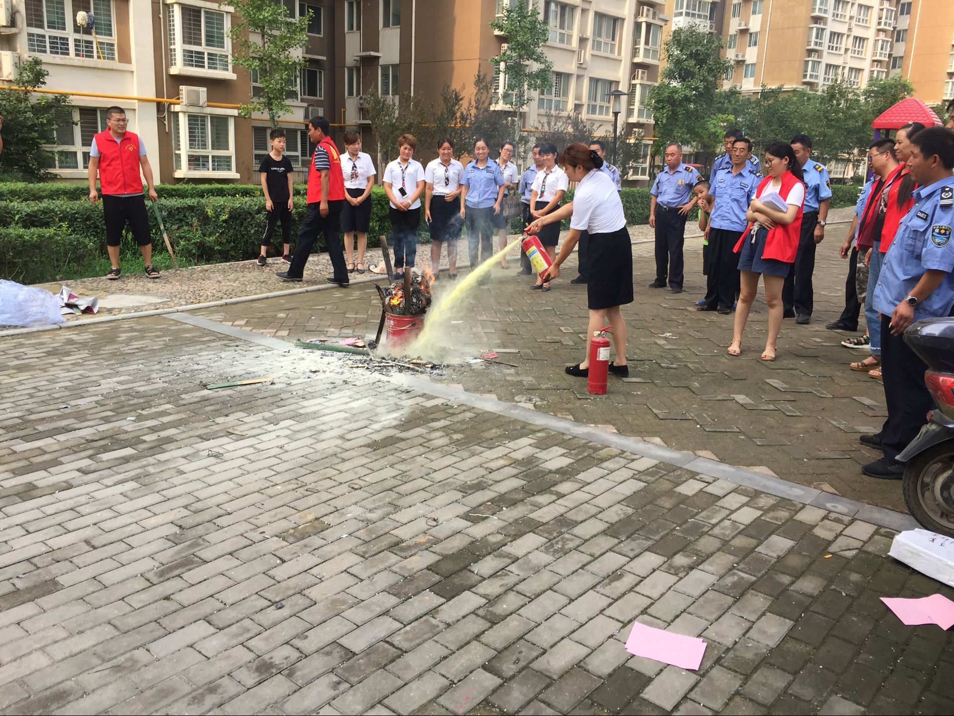 专业人员现场讲解了灭火器的使用方法及灭火注意事项,物业各部门人员参加并现场演习,业主和园区小朋友都积极参与了此次活动。